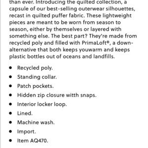 J.Crew Quilted Cocoon Puffer With PrimaLoft Jacket Coat