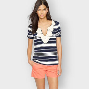 J.Crew Rope Necklace Tunic Tee Striped V Neck Cotton Knit Size Small