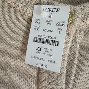 J.Crew Women's Hthr Mushroom Cotton Cardigan Sweater Lady Jacket Size L NWT. Regular fit. Hits at hip. 100% cotton. Machine wash. Imported.