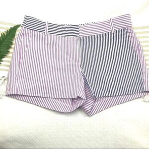 J. Crew Navy and Purple Contrast Pinstripe Shorts
