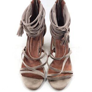 JEFFREY CAMPBELL Despina Strappy Sandal In Taupe Tassels Open Toe Ankle Strap