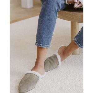 JENNI KAYNE Shearling-Lined Pointed Mule Size US-5 IT-35 in Laurel Green.