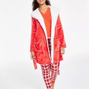 JENNI Women's Printed Short Sherpa Hooded Robe