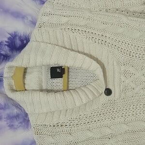 JF J.Ferra Men's White Cable Knit Cowl Sweater Size Small Women's Size Medium