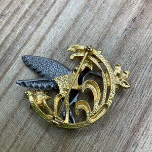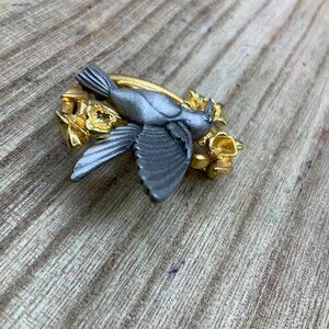 J.J. Hummingbird Vintage Flowers Pewter Gold Tone Pin Brooch
