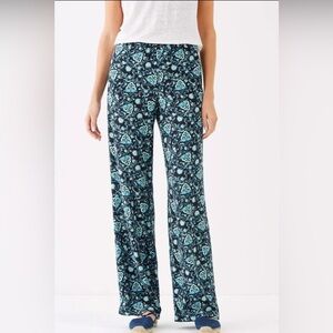 J.Jill Women’s Pants Large Blue Floral Soft Rayon Elastic Waist Boho Career