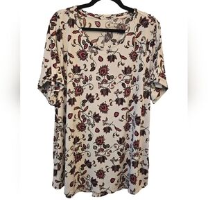 J.Jill XLP Linen Lyocell Blend Floral Tunic Top Sheer
