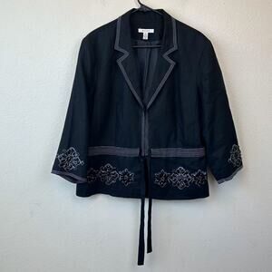 JM Collection Linen Blazer Womens 16 Beaded Black Rhinestones Party Wedding