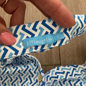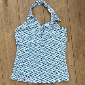 J.McLaughlin Blue and White Patterned Collared Halter Top size Large