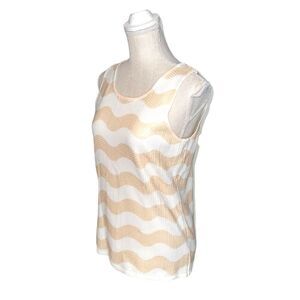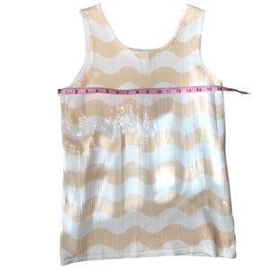 J. McLaughlin Tan Ivory Striped Stretch Georgica Sequin Top