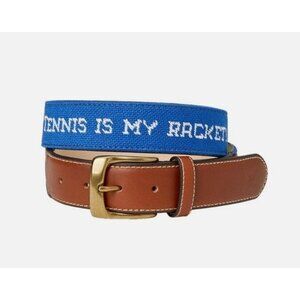 J.Mclaughlin Tennis is my racket Leather Needlepoint Belt Men's size 36