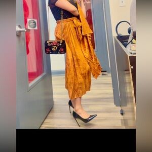 J.O.A. Rust Floral Skirt pleated xs boho fall classy