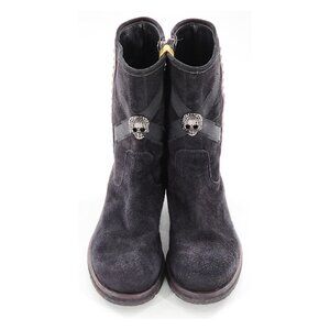 JOHN RICHMOND Beaded Scull Studded Suede Mid-Calf Boots