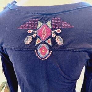 JOHNNY WAS EMBROIDERED BOHO BLACK MULTI COLOR DRESS SIZE XS