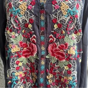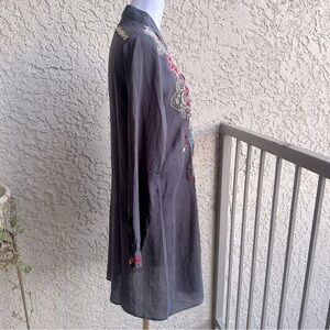 JOHNNY WAS Embroidered Tunic Button Down Multicolor Boho Collard Shirt Dress