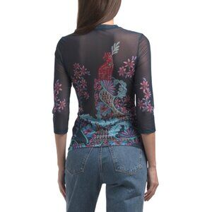 JOHNNY WAS Navy Natalie Three-quarter Mesh Tee