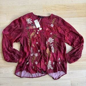 JOHNNY WAS Zuzu Field Henley Blouse NWT