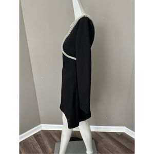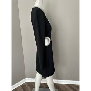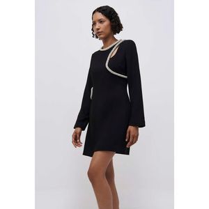 The Katharine Diamante Mini Dress in Black. Diamante embroidery mini dress with cutouts.
