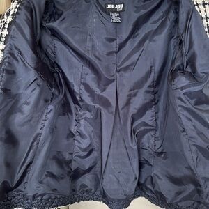 JOU JOU Lux Black & White Tweed Wool Blend Cropped Pea Coat Button Up Jacket