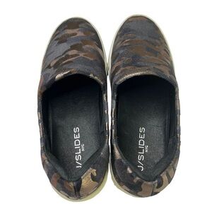 J/SLIDES NYC Ariana Camo Metallic Velvet Slip On Sneakers Size 6