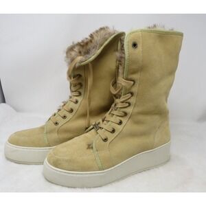 J/SLIDES NYC TORRIE Suede Leather Faux Fur Lined Lace Boots Womens Size 7.5
