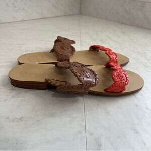 Jack Rogers Lauren Leather Flat Boho Slide Sandals Shoes