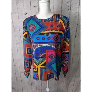 Jacqueline Ferrar Y2K Vintage Pop Art Blouse with Shoulder Pads- Size 12 L Large