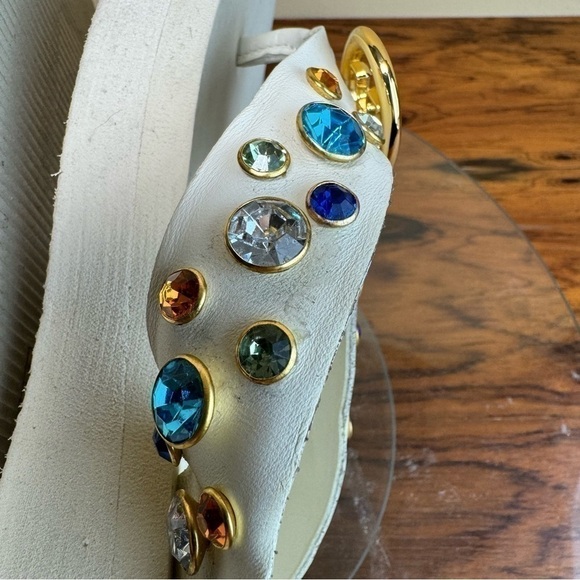 90's inspired embellished thong sandal with 'JC' logo metal bit.