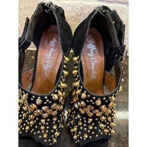 Jeffrey Campbell Ponytail Black Leather Gold Studded Heels Size 7.5 EUC