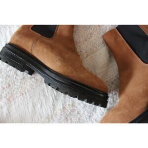 Jenni Kayne Brown Walnut Suede Brooklyn Lug Chelsea Boots Size 36