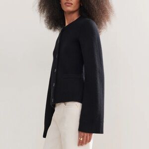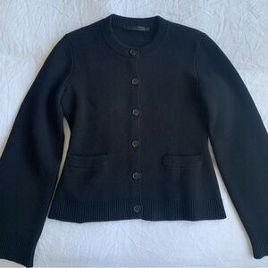 Jenni Kayne Cooper Wool Cashmere Crewneck Button Knit Cardigan Sweater Black