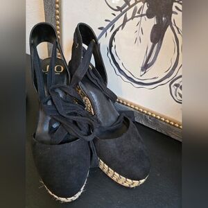 Jennifer Lopez Black and Gold Wedge Sandals