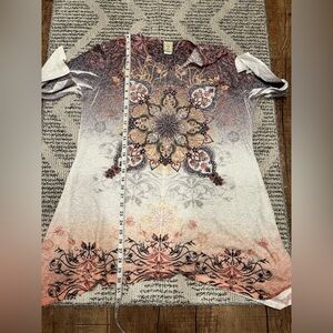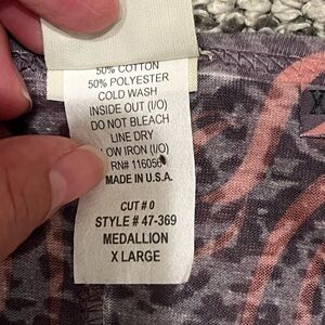 Pre-owned condition like new, size XL, 50% cotton 50% polyester, 3/4 sleeves, semi sheer. Please see photos for measurements.