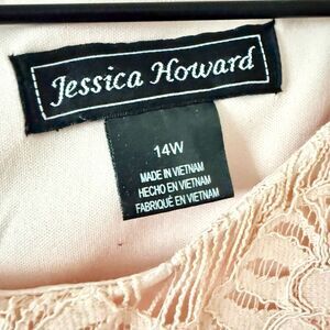 Jessica Howard Lace Illusion Sheath Dress in Peach - Size 14W