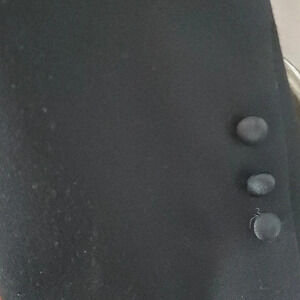 Shiny satin like material on buttons and top of pockets, Length is approx 27 1/2 inches, faux front pockets.