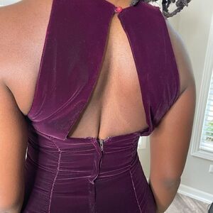 Jessica McClintock Gunn Sax Vintage Velvet and Pearl Thigh Split Evening Gown