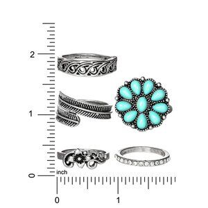 Jessica Simpson Faux Silver Tone Turquoise Stone Ring Set Set of 5