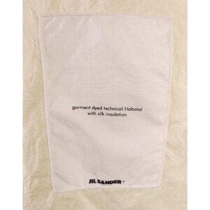 Made in Italy from a garment dyed lightweight silk polyester blend with a soft touch and lightweight padding. Features a spread collar, snap button closure, two in-seam side pockets, short sleeves and a Jil Sander+ logo tab on the back. Fully lined, lightly padded and features one inner pocket.