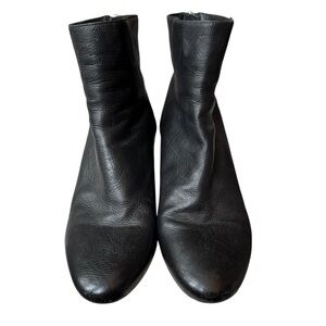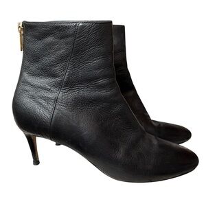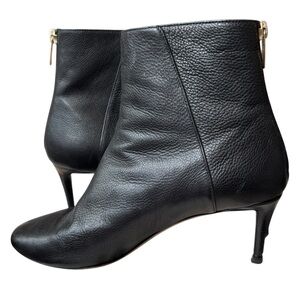 Supple leather Jimmy Choo booties in a size 37 (US size 7). These in are good preowned condition aside from the heels, which are a bit ragged - this is an easy/relatively cheap repair for anyone who wants to give these a bit of TLC.