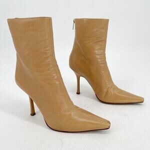 Jimmy Choo Camel Tan Retro Y2K Pointed Toe Heeled Ankle Boot size IT 38.5