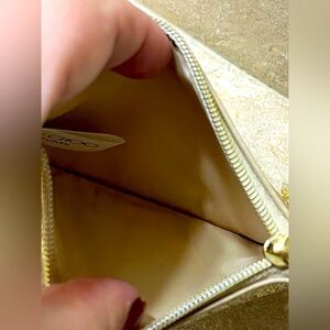 Jimmy Choo Gold Glitter Mini Wallet Coin Card ID Purse Pouch Charm Logo, NWOT