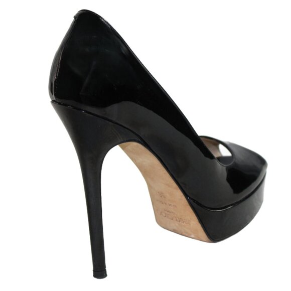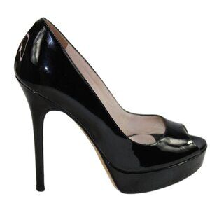 Jimmy Choo Luna Black Patent Leather Peep Toe Platform Stiletto. Heel, Size 36