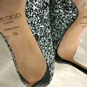 Jimmy Choo Monochrome Coarse Glitter Fabric Romy Pointed Toe Pumps Size 36