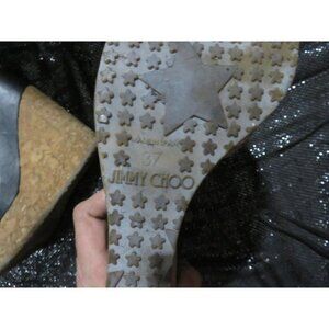 Elevate your style with Jimmy Choo's Metallic Leather and Cork Ankle Strap Wedges. Size 37 (US 7). Glamorous, vintage, comfortable and perfect for any occasion. Please do your own research on J Choo shoes to see if his size 37 will fit you as charts differ