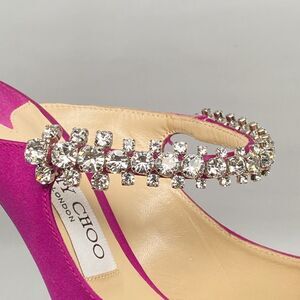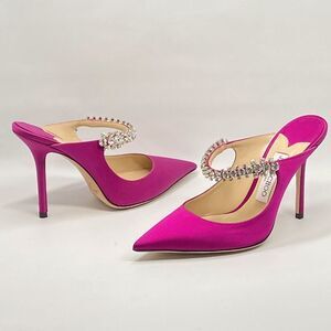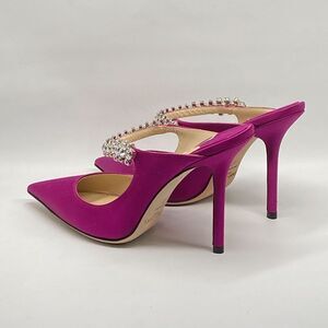 Jimmy Choo Bing 100 Satin Mules With Crystal Strap size 37