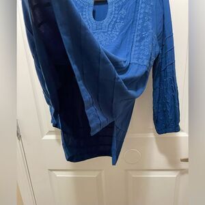 John Mark Womens Embroidered Top Blouse Tunic Size M 3/4 Ruffle Sleeve NWT