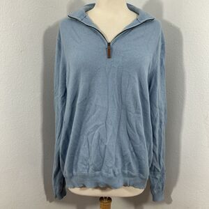 John W Nordstrom Sweater Mens Large Blue Cashmere Quarter Zip Pullover