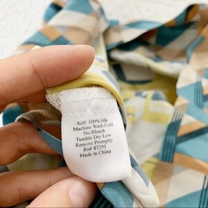 Not sure the style name of this piece. Beautiful print. 100% silk. Good preowned condition with some small spots as shown in detail photos (haven’t tried to treat). Left armpit seam is getting loose, needs some reinforcement. The string at front goes all the way around and is adjustable for tightness. Please look through all photos for more details. Selling as is. Smoke free. Fast shipping. Check out my page. Bundle and save!