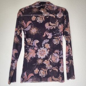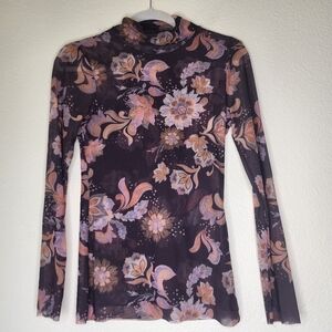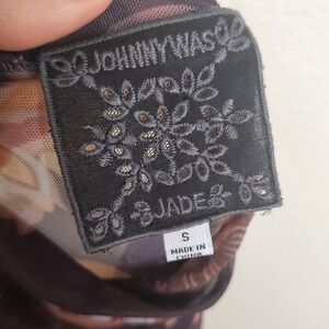 Johnny Was Jade Harmonia Floral-Print Mesh Mock Neck Top S