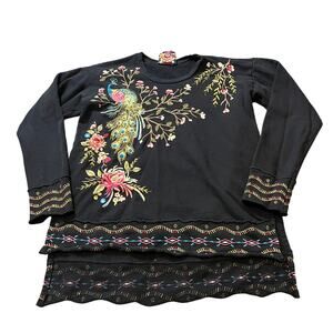 Johnny Was Kaira Hi-Lo Pullover Embroidered Peacock Sweatshirt Womens Size S